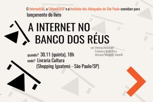 Esta quinta-feira, 30/11, das 18h às 21h, o InternetLab, a Editora IASP e o IASP – Instituto dos Advogados de São Paulo convidam para o lançamento do livro “A Internet no Banco dos Réus”, dos diretores Dennys Antonialli, Francisco Brito Cruz e Mariana Valente. A publicação é uma compilação de edições da coluna quinzenal “Deu nos Autos”, no jornal o O Estado de S. Paulo, na qual se debatem casos judiciais envolvendo regulação de tecnologia e Internet, e tem prefácio da Ministra do Superior Tribunal de Justiça (STJ), Nancy Andrighi.