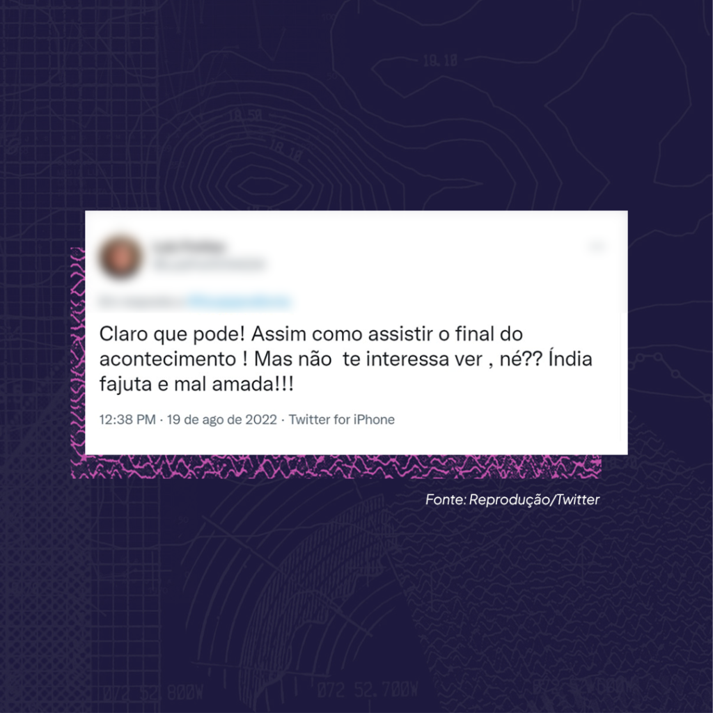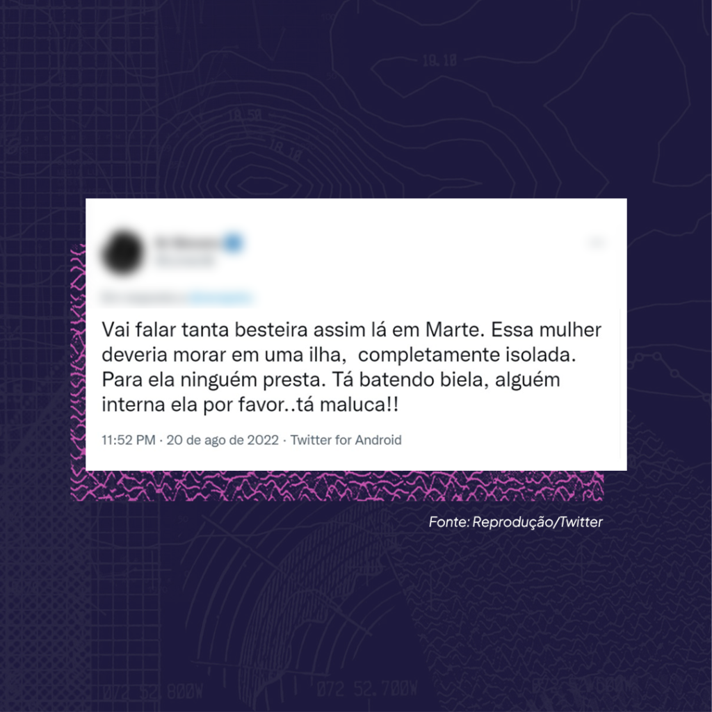 “Quando você decide se referir a uma candidata fazendo uso de substantivos utilizados para nomear animais, você nega o lugar de humano para aquele sujeito específico. Essa é uma antiga tática para alimentar a ideia de que algumas pessoas não merecem nem ao menos serem assim consideradas. No caso das candidatas, vemos um movimento similar. Você nega que elas ocupem o espaço da política, reduzindo-as a um sujeito não-humano”, explica Fernanda Martins, antropóloga, diretora do InternetLab e uma das responsáveis pela pesquisa.