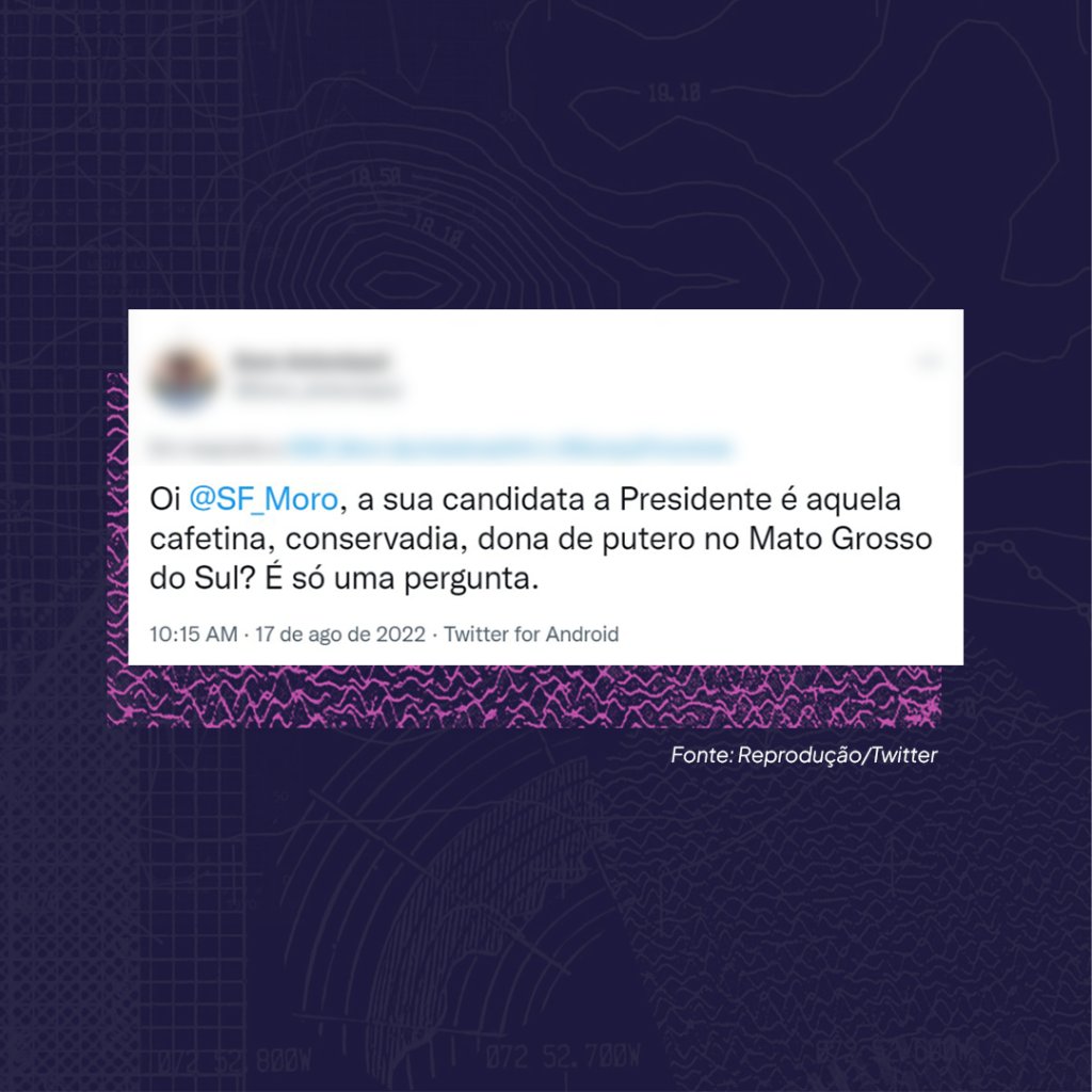 Posts que inferiorizam ou promovem descrédito intelectual das candidatas monitoradas são quase 17% dos ataques. “As ofensas morais e a inferiorização das candidatas, por sua vez, cumprem o papel de reforçar o suposto despreparo para que elas ocupem a política institucional. “Lixo” e “porcaria” são exemplos dessa tentativa de inferiorização”, complementa Martins.
