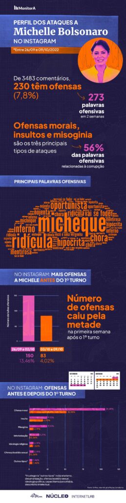 “Sabíamos desde o começo da campanha que a presença de Janja e Michelle seria fundamental para o andamento das eleições. A surpresa foi percebermos que o nível de agressões a Janja foi crescendo após o primeiro turno e, na rede em que ambas estão (Instagram), os ataques a Janja são proporcionalmente maiores. Talvez isso nos permita assumir que no Instagram os insultos e ataques vêm principalmente de eleitores bolsonaristas”, complementa Martins.
