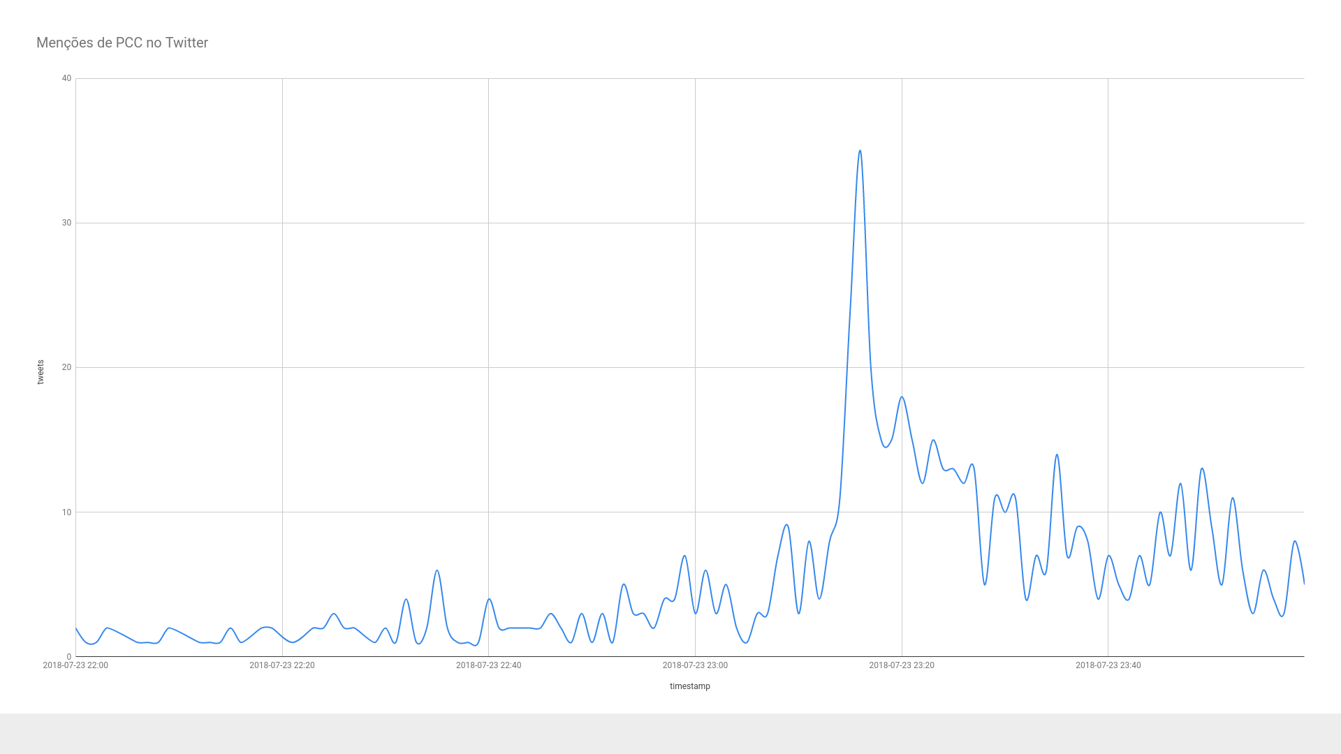 Por volta das 23h13, o candidato à Presidência tratou no programa do tema da segurança pública e, em seguida, a entrevistadora Ana Clara Costa questionou as medidas a serem tomadas em relação à organização criminosa PCC. Em resposta, aproximadamente às 23h16, Alckmin argumentou que todos os grandes líderes do PCC estão presos, além te der afirmado que “o combate ao crime é permanente”. O acompanhamento revelou que o pico de menções ao termo “PCC” no Twitter foi às 23h15, as quais chegaram à marca de 35 em um minuto.