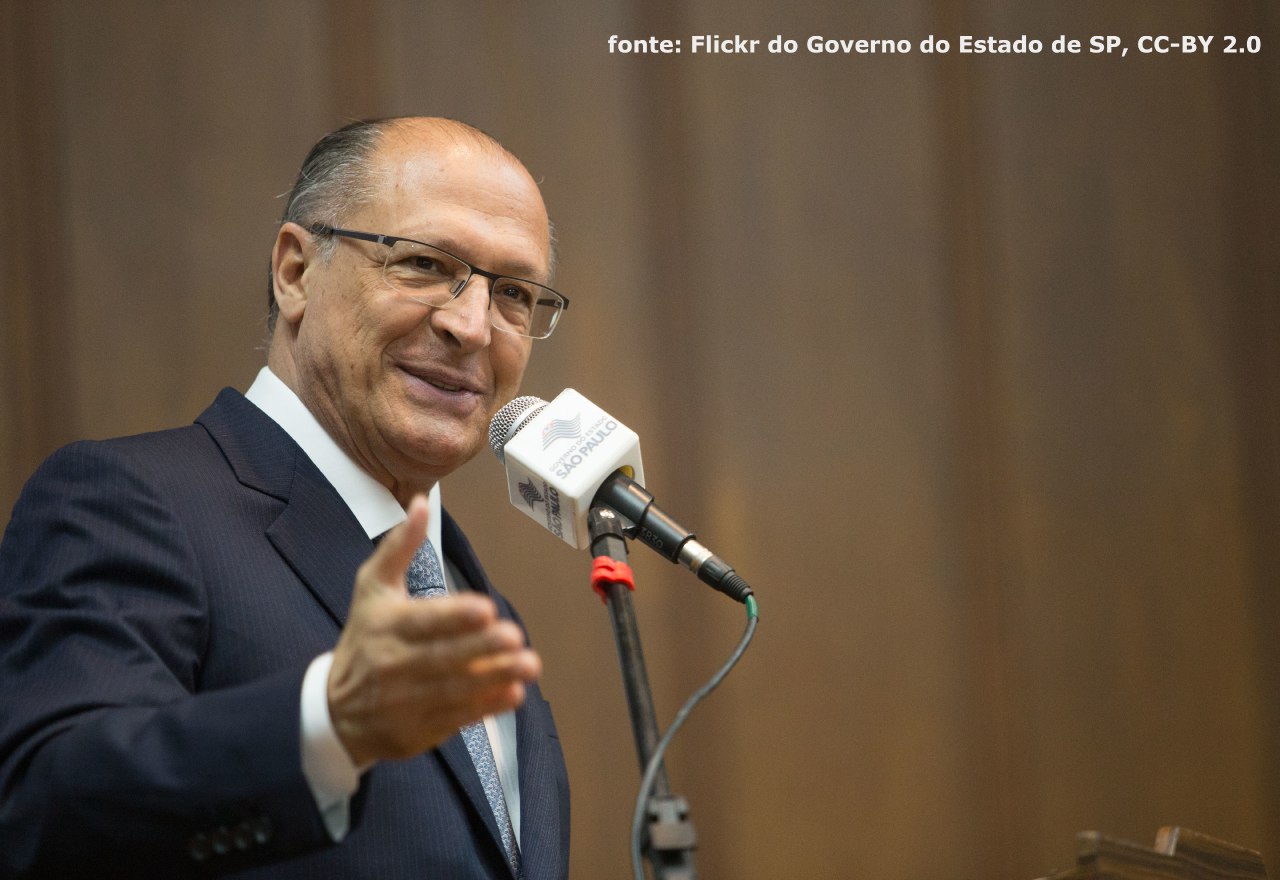 Retiramos da nuvem de palavras algumas preposições, verbos, advérbios, artigos, pronomes e numerais (“por”, “são”, “quase”, “os”, “ele”, “dois”, etc.), além de substantivos como “Alckmin” (uma vez que a nuvem é formada justamente por tuítes que mencionam o candidato). Confira aqui a lista de todas as palavras removidas.