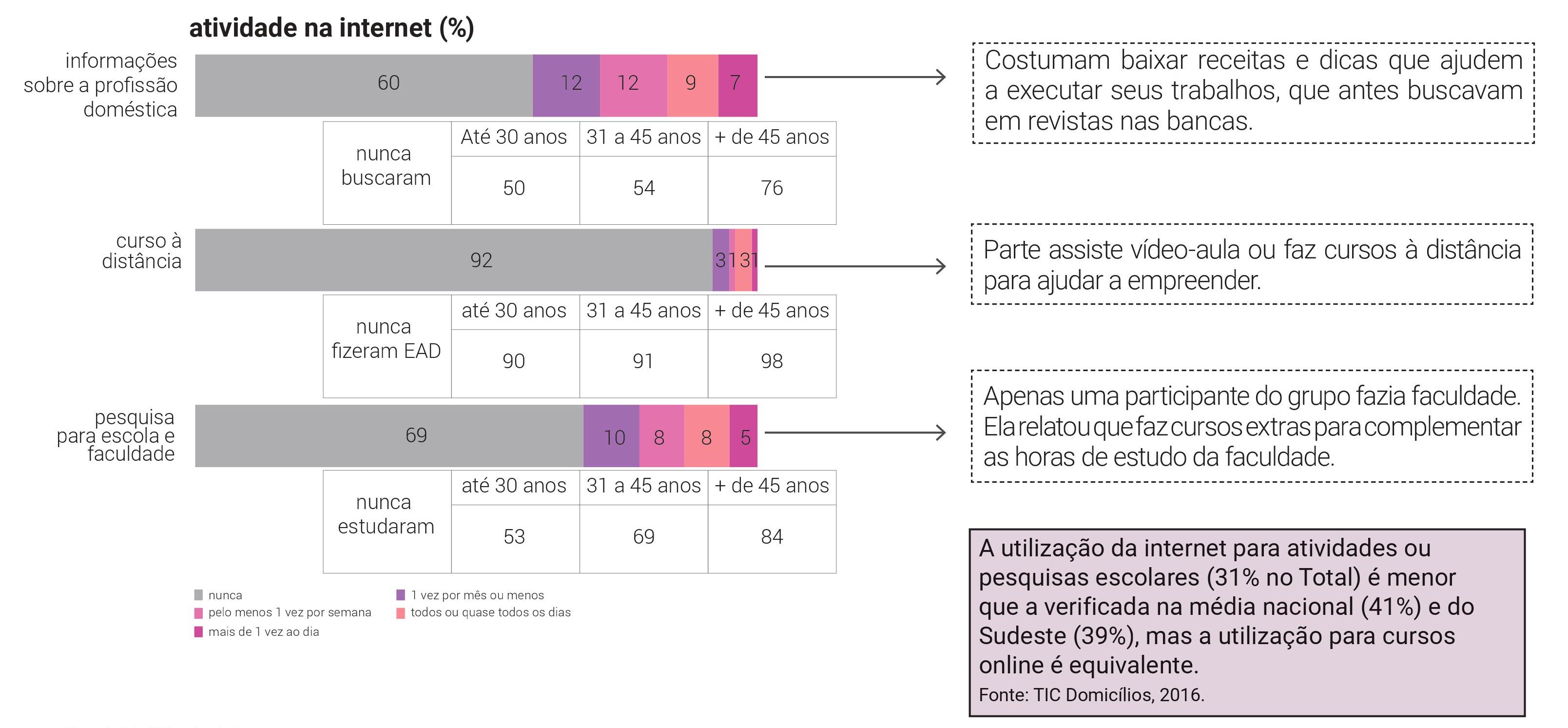 Além disso, a internet na casa dos patrões, normalmente situadas nas regiões centrais da cidade, é apontada pelas trabalhadoras como melhor que a de suas casas, normalmente situadas nas regiões periféricas.