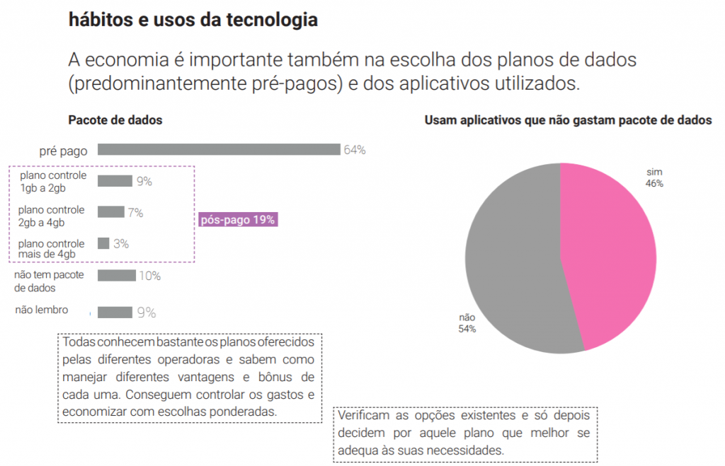 Elas conhecem muito bem os planos existentes no mercado, e usam os dados com controle, priorizando o wi-fi quando disponível.