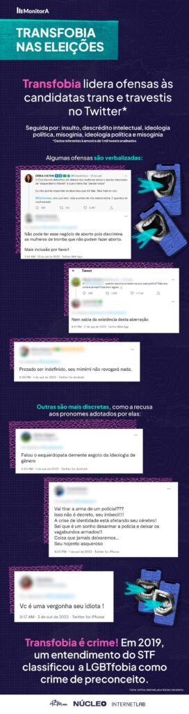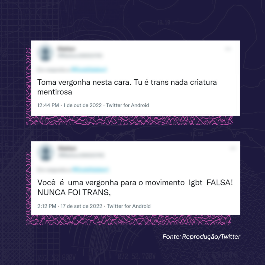 A pesquisa mostrou ainda que os usuários do Twitter apostam no discurso de transfobia para atacar o posicionamento ideológico das candidatas trans e travestis.